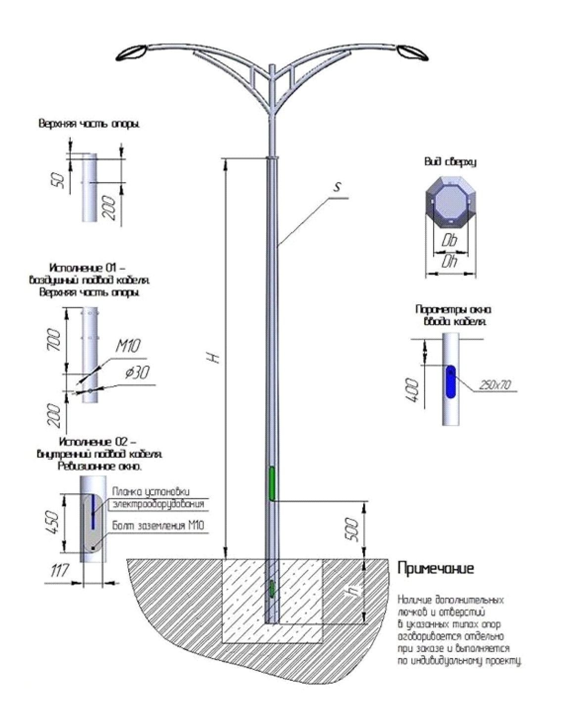 Х/Х – Высота опоры над поверхностью земли / общая высота опоры