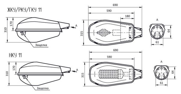 - Размеры корпуса дают возможность установки энергосберегающих ламп повышенной мощности.